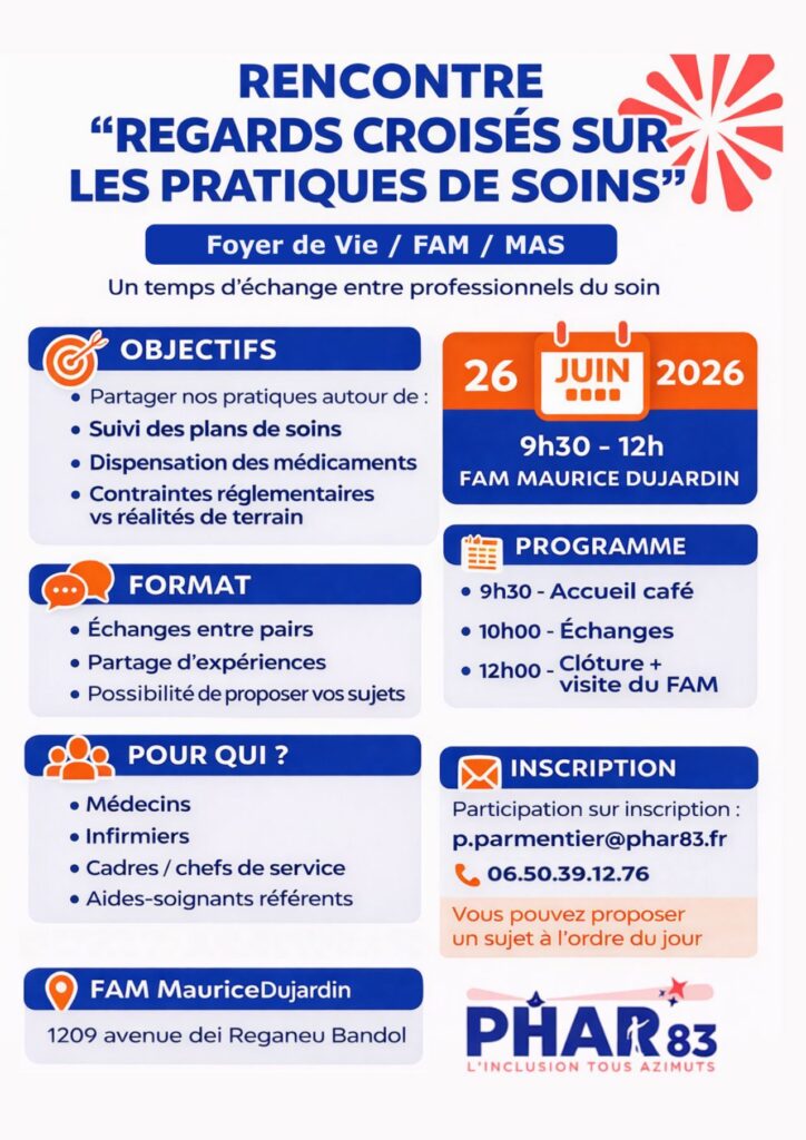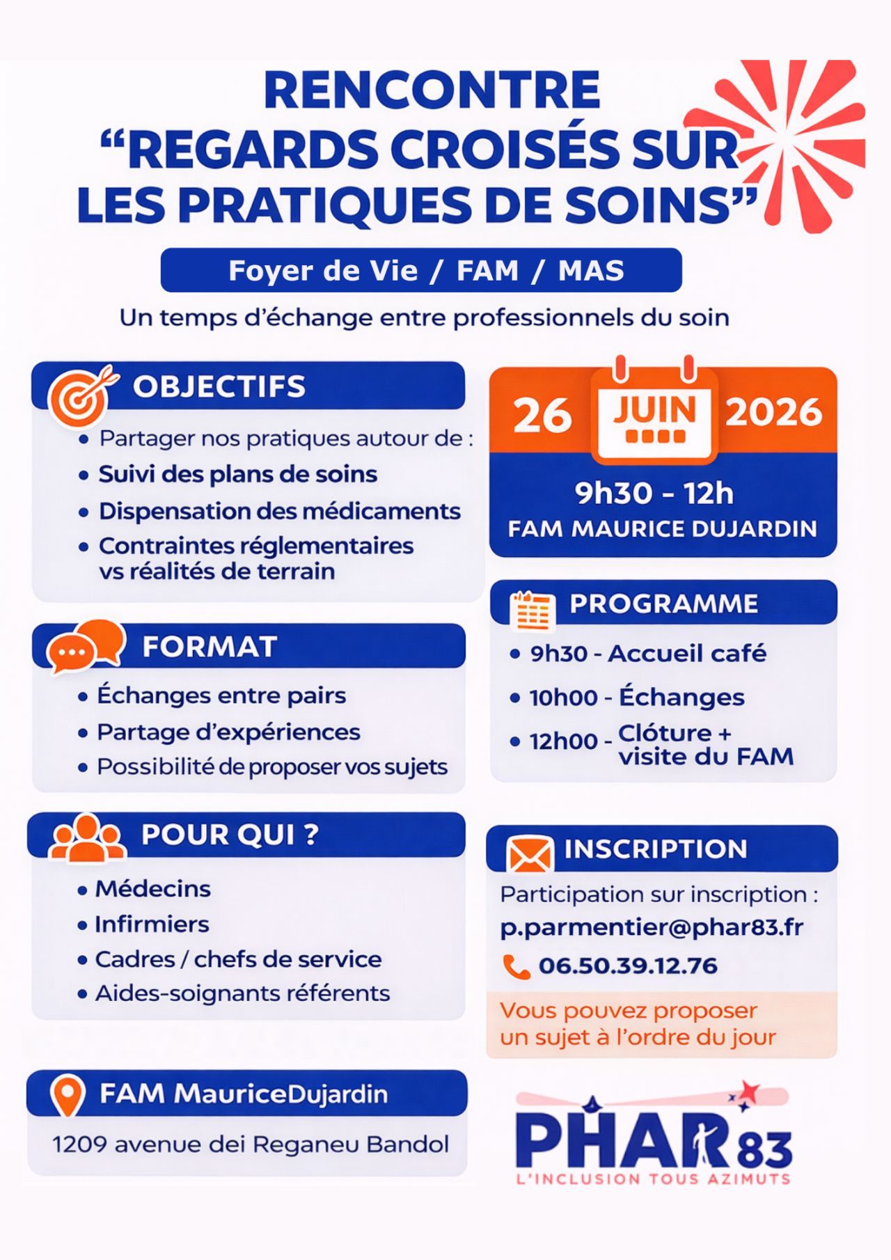 « Regards croisés sur les pratiques de soins », à destination des professionnels intervenant en FAM, MAS et Foyers de Vie.